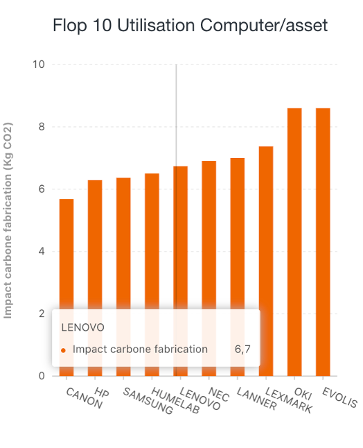 Graphique illustrant le nombre de Kg émis/ impact carbone lors de la fabrication des PC du parc